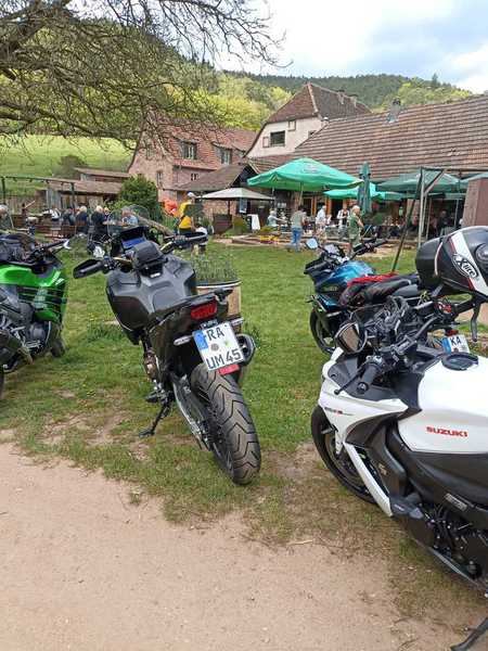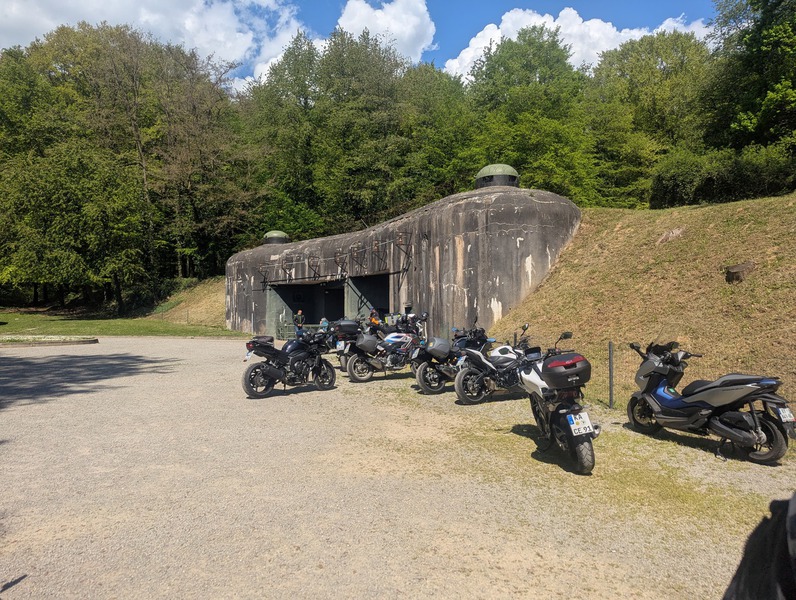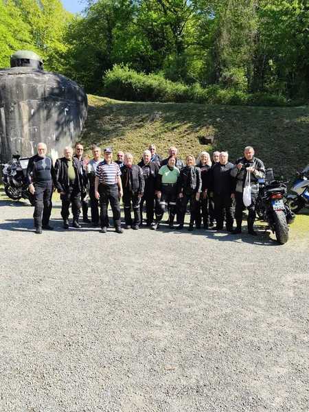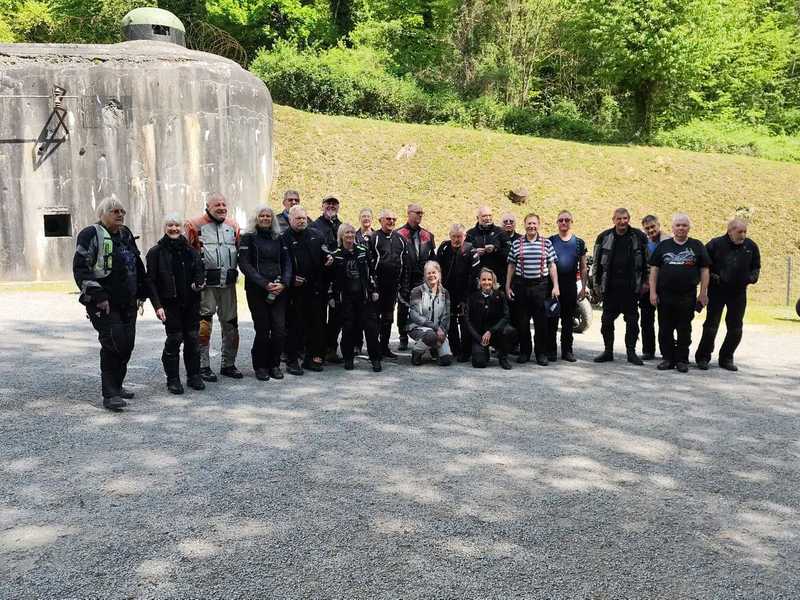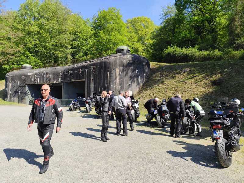 Unser Tourguide Raphael hatte für uns eine Tour durch die Anlage organisiert und unser Guide Marc Halter führte uns 30 Meter in die Tiefe in das Innere der Festung. Die Tour ging durch ein Labyrinth von Gängen und Marc erklärte alles sehr kurzweilig und hatte auf jede Frage eine Antwort. Es war super interessant und ist allemal einen Besuch wert. Die Zeit verging daher wie im Flug und schon war die Führung vorbei. Vor der Weiterfahrt von der Festung stießen noch weitere MCB’lerinnen und MCB’ler zur Gruppe, so dass wir dann mit insgesamt 22 Motorrädern die Fahrt über Pfaffenbronn, Lembach und Rumbach nach Busenberg fortsetzten, zum nächsten Stopp dem Bio-Gasthof Bärenbrunnerhof. Dort machten wir Mittagspause und einige genossen die Pfälzer-Spezialität „Schiefer Sack“, andere ließen sich einen leckeren Vollkorn-Flammkuchen schmecken. Nach dieser schönen Pause, bei der wir sogar im Freien sitzen konnten, ging es dann weiter über Bobenthal, Germanshof, Weißenburg und Niederroedern zuück nach Wintersdorf, wo die Tour endete. Wir bedankten uns ganz herzlich bei unserem Raphael für die gelungene Eröffnungstour. Er war das erste Mal als Tourguide beim MCB unterwegs, aber wir hoffen doch, dass es nicht das letzte Mal war ! (Marion)