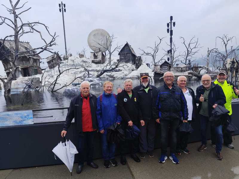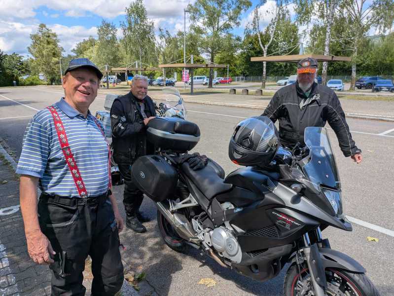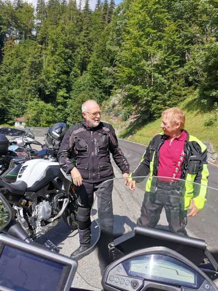 Insidern ist dieses Fahrsystem des Tourguides nahe Kaiserlautern vertraut, bei dem eine schnellere Gruppe, die Hasen und eine langsamere Gruppe, die Igel, auf nahezu derselben Route unterwegs sind und obwohl die Hasen ausscheren und mehr Kilometer machen, dafür schneller, alle gemeinsam ans Ziel kommen. In diesem Bericht geht es aber nicht vorwiegend um dieses Fahrsystem, sondern eher um das originale Märchen aus Buxtehude der Brüder Grimm, mit dem entsprechenden Verhalten der Beteiligten. So fanden sich dienstags 12 Motorradfahrer bei der AGIP ein, um in einer Gruppe, bei strömendem Regen, Richtung Bregenzer Wald zu fahren und nach typischem Verhalten von Igeln, wenn Gefahr droht, hatten sich bereits schon 2 eingerollt und machten die Tour mit dem Auto. Um die Mittagszeit hörte der Regen auf, die Hasen begaben sich auf die geplante, kurvenreiche Strecke und es kam, wie es kommen musste, ganz nach Gebrüder Grimm, kamen die Igel durch Beschiss 5 Minuten vorher an der Unterkunft an. Das Stiefelbier wurde gleich auf der Terrasse in lustiger Gesellschaft und viel Gelächter getrunken. Am nächsten Tag fiel das Highlight, die Silvretta-Hochalpenstraße wegen Murenabgang und Sperrung deswegen aus, die Alternative, geführt von Gerhard über den Arlbergpass, war bei bestem Wetter auch sehr reizvoll. An den nächsten Tagen führten Touren von Martin und Gerhard an den Rottachsee, der Alpe Dornach, den Pfänder und immer wieder wurde der Riedbergpass für raus oder rein nach Sulzberg genutzt. Ein Hase wollte auf der Tour zurück von der Alpe Dornach schlau sein, überholte die Gruppe, das war leider eine Sackgasse und so ging der Wettstreit wieder zugunsten der Igel aus. Aufgrund von starken Regen machte eine Gruppe einen Busausflug nach Bregenz zur Seebühne, sehr sehenswert, das Bühnenbild von „Der Freischütz“. Nach 5 Tagen stand die Heimfahrt an. Wieder feuchtes Wetter und bei einer Rast wurde das rechte Langohr eines Hasen plötzlich taub. Ein Landarzt hatte versucht, den Gehörgang wieder frei zu bekommen, es scheiterte kläglich. So nimmt die Geschichte eine sonderbare Wandlung, ein Igel hatte den Hasen Huckepack genommen, es endete nicht tragisch nach 74 Versuchen, wie im Märchen, sondern glücklich, weil Hase und Igel gleichzeitig in Bietigheim ankamen und somit beide Gewinner waren. Trotz heftigem Wetter hatten wir wieder so viel Spaß, danke deshalb den Tourguides und den Teilnehmer-innen und auch dem Ochsen Sulzberg Team für die schönen Tage, bei bester Unterkunft, leckerem Essen und tollem Service.