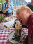 Dann der Abschlußabend, Gaumen.- und Augenschmauß, die fränkische Platte. Gegrilltes Schäufele aus der Röhre mit vielen regionalen Beilagen. Das naturbelassene Holzbrett, auf welchem alles stilvoll angerichtet war, musste von zwei Personen getragen werden, so groß war es. Der absolute Höhepunkt war dann, das direkt von Ron am Tisch auf offener Flamme zubereitete und flambierte Crepe Suzette, serviert mit Vanilleeis. Ein Zungenschnalzer vom Feinsten.